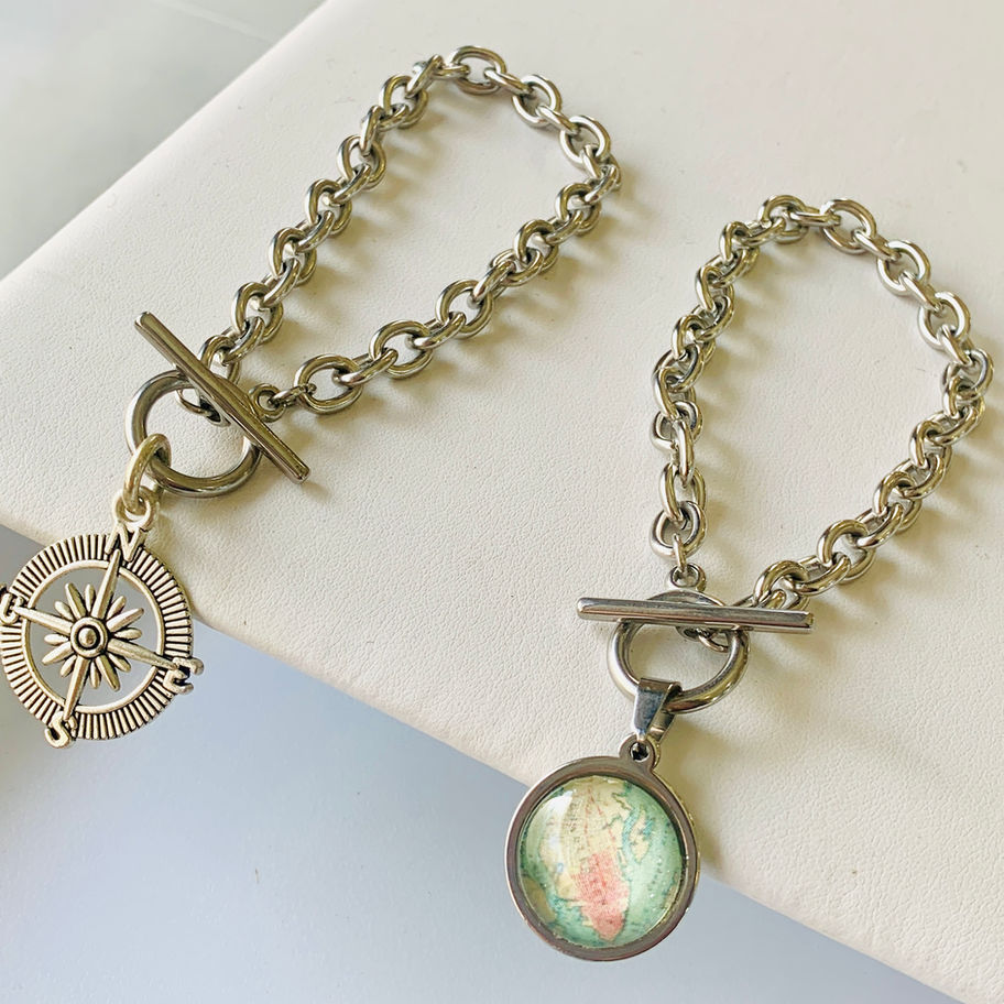 Discover the perfect blend of style and craftsmanship with our toggle bracelet, available in 18 kt. gold PVD plated and sleek silver stainless steel. Featuring a unique map-inspired design, this accessory adds a one-of-a-kind touch to any look and is crafted from quality materials for everyday wear.